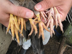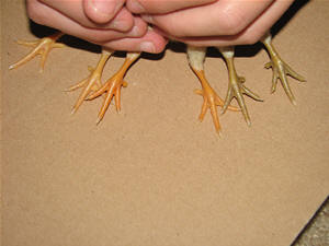 Op jonge leeftijd is al verschil in beenkleur waar te nemen. De donker gekleurde benen moeten hennetjes zijn.