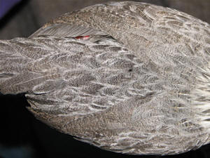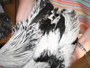 Hieruit kwamen al enkele mooi getekende fokzuivere koekoekzilverpatrijs hanen en hennen maar ook zilverpatrijs hennen. Bij deze hennen zaten nogal wat fouten: slecht gepeperd en sommige hadden zelfs zwartekoppen. (foto rechts).