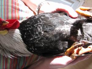 Ik heb hieruit een leuk haantje en 5 hennetjes gefokt. Toch kon ik niets met dit haantje omdat ik me later realiseerde dat koekoekzilverpatrijs 2 geslachtgebonden factoren heeft: zilver en koekoek. Zilverpatrijs mag alleen de zilverfactor hebben. Om uit dit haantje zilverpatrijs te fokken moest ik hopen op crossing-over en dan moet je zoveel dieren fokken, dat ik dat maar heb gelaten.