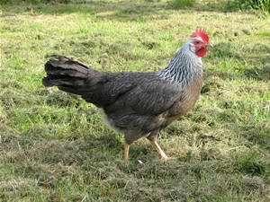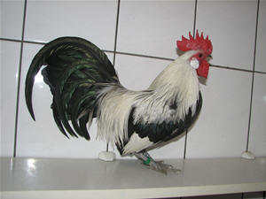 Wit-benige haan uit bovenstaande kruising x geelbenige hen