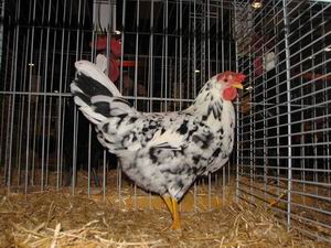 Een hele mooie kleurslag bij Leghornkrielen is Exchequer(witbont) deze kleurslag is in Nederland alleen erkend bij Leghorns en Leghornkrielen.