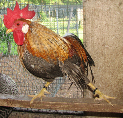 Helaas ontsnapte me een haan, die ik nooit weer gezien heb en ging er 1 dood. De enige overgebleven haan werd kreupel voordat ik de hennen de eerste eieren legde. Maar vlak erna zijn ze met de leg begonnen en heb ik deze eieren meteen gespaard, maar helaas was van alle eieren die ik verzamelde er maar 1 bevrucht. Om hier wat aan te hebben moest het een haan zijn (50% kans), isabelkleurig zijn (25% kans) en koekoek in zich hebben (50% kans). De kans was 1 op 16, maar nu had ik geluk. het ei kwam op 1 maart 2017 uit en was een haantje, Isabelkleurig en had koekoek in zich. Helaas niet homozygoot voor koekoek, maar dat was ook te mooi geweest.
