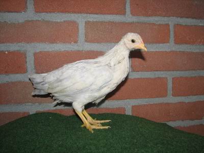 De heterozygote koekoekisabelpatrijs haan Leek erg mooi te worden maar kreeg helaas wel last van het probleem wat je ook bij isabelpatrijs en andere kleurslagen met parelgrijs ziet, dat de schouderveren nauwelijks uit de huls komen.