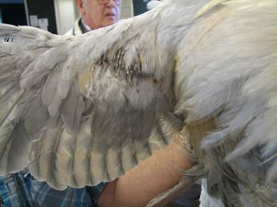 bij jonge dieren; belangrijke kleurafwijkingen te bleke borstkleur en aanwezige koekoektekening in de borst.